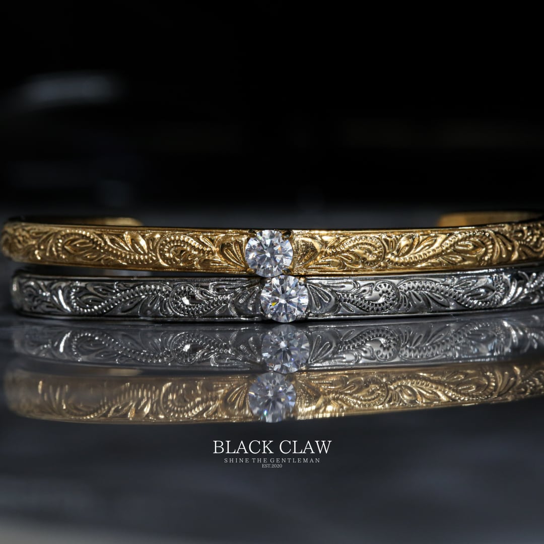 【Plumeria Engraved Zirconia Bangle】